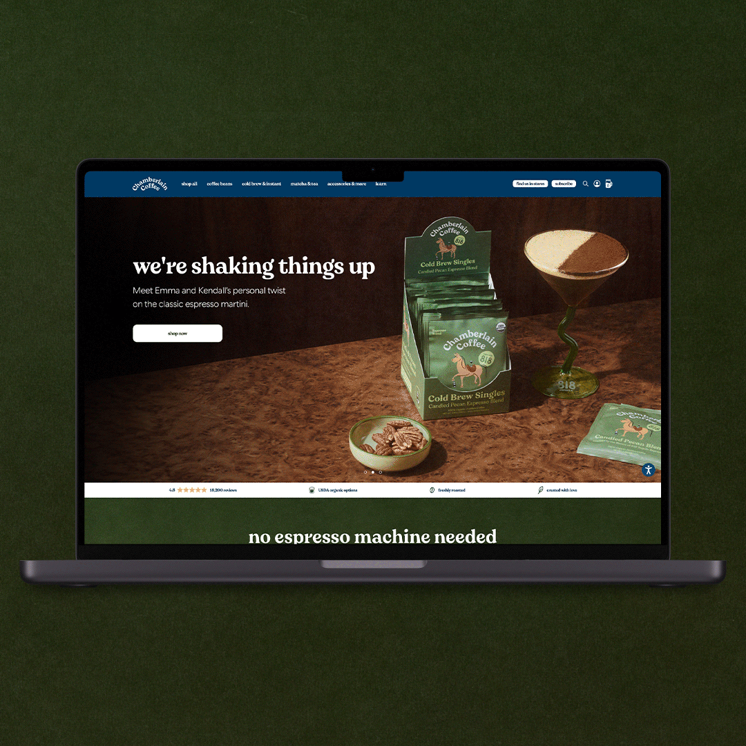 Chamberlain Coffee’s playful, approachable brand comes to life through digital design, with experiences that feel both welcoming and aspirational.