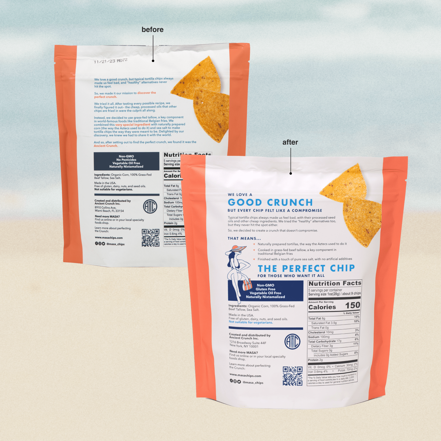 I partner with MASA to elevate their visual identity through intentional packaging design, cohesive print collateral, and digital assets that reflect their bold ingredients and modern nostalgia.